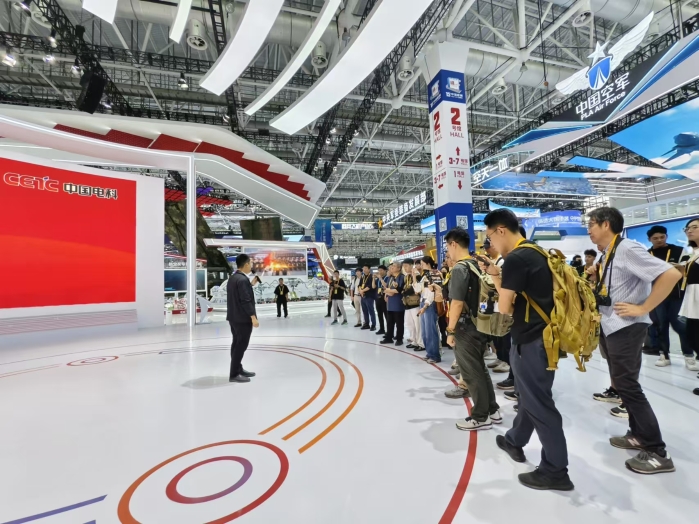 本屆展會,中國電科以“擁抱體系制勝時代”為主題,打造了C4ISRK、電子基礎、數字經濟、新域新質等四大展區。攜旗下37家二級單位,43家研究院所,室內外展示面積達1萬平米,共展出36部大型實裝,480項產品參展,其中73項產品首次亮相。體系化展示了整體解決方案和譜系化、智能化裝備,彰顯了軍工電子在武器裝備機械化、信息化、智能化融合發展中的作用。